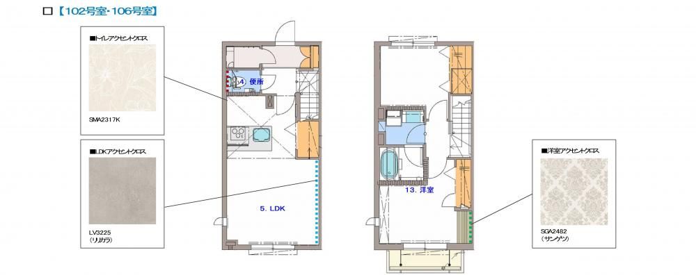 2LDK ( 洋室5畳(2階)/洋室6.5畳(2階)/LDK13.3畳(1階) )