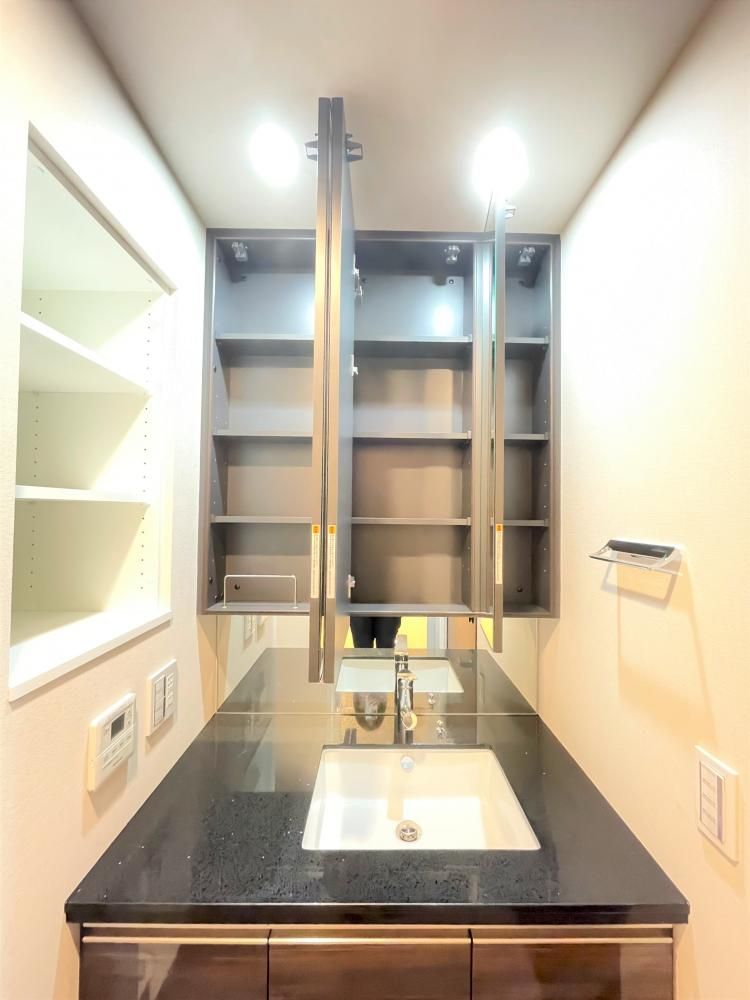 【洗面所】 三面鏡の洗面台